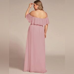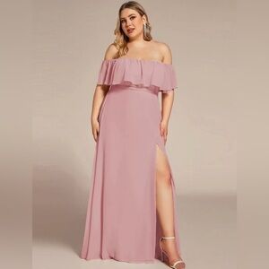 NWT - Plus Size PINK Off the Shoulder Formal Bridesmaid Dress with Thigh Split