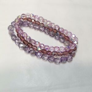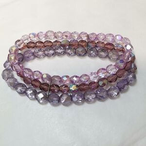 Vintage Czech lavender fire polished glass bead stretch bracelet