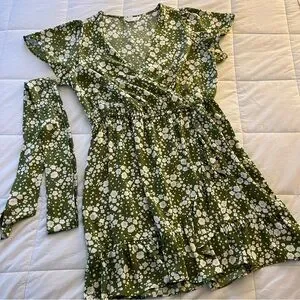 Like New LC Lauren Conrad Colie Wrap Short Sleeve Dress in Green Floral Print