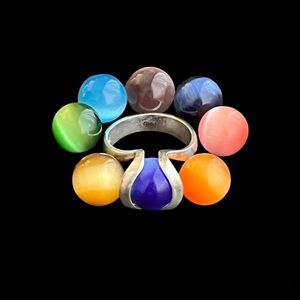 Eight rings in one because of interchangeable 10mm cats eye glass balls