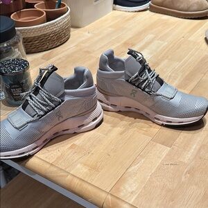 Stylish On Running sneakers featuring Cloudtec technology. Sleek gray design with pink accents. Perfect for active wear. Only worn one time inside brand new!