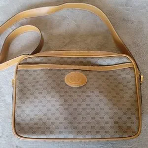 Vintage GUCCI Micro GG Canvas Cross body Shoulder Bag PVC Leather Beige Tan Classic Luxury Style