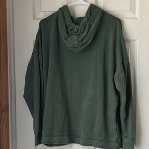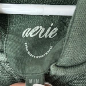 This Aerie hoodie in a rich forest green hue offers a cozy and relaxed fit, perfect for casual wear. Crafted from a soft, textured fabric, it features an attached hood and long sleeves for added warmth. Ideal for layering, this top is a stylish addition to any wardrobe.