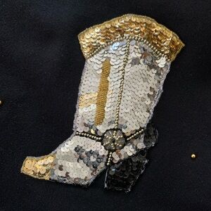 Vintage Jerzees Black Sweatshirt with Sequin Western Boot Design Size Large