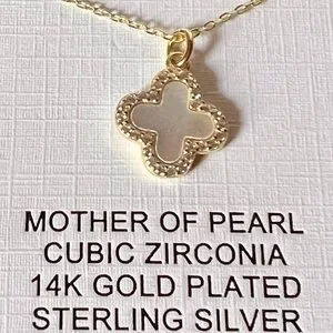 Rachel Zoe 14k Gold Plated Clover Pendant Necklace with CZs