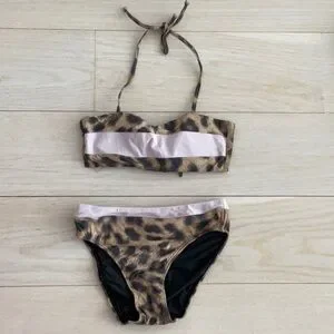 PILYQ Leopard Print Bikini Set with Pink Accents kid’s size 12