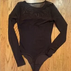Abercrombie chocolate brown sheer bodysuit with long sleeves. Perfect for layering or a night out.