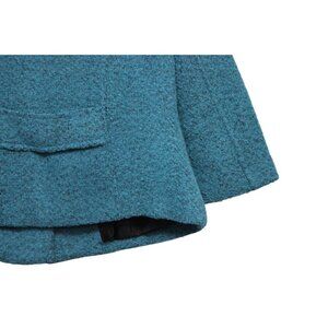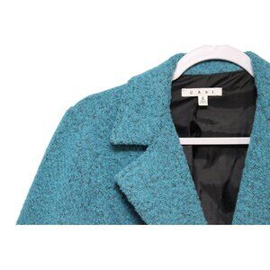 This CAbi blazer jacket in size 6 features a wool blend textured tweed outer shell in a colorful blue shade. With a classic and preppy style, it has 3/4 sleeves with button closures and is lined with polyester. Perfect for various occasions including travel, parties, casual outings, and workwear, this jacket is ideal for the winter, fall, and spring seasons.