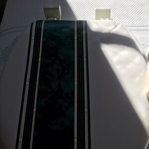 Green and Cream Striped bathroom shower curtain and matching items