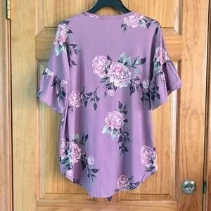 Women’s Reborn J (from Neesees) gently used super soft purple floral top with buttons and front tie