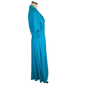 Vintage 80s bright blue linen blend women’s maxi dress SZ 10