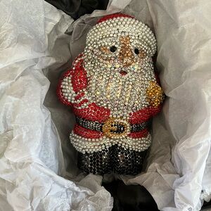 Add sparkle to your handbag with this stunning crystal Santa Claus. Featuring vibrant red, white, and black crystals, this piece is perfect for festive celebrations.