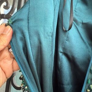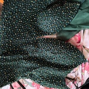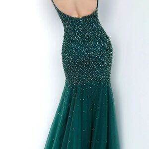 This stunning green evening gown is perfect for special occasions. Its elegant design and rich color make it a standout choice.