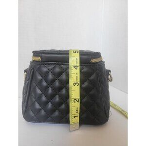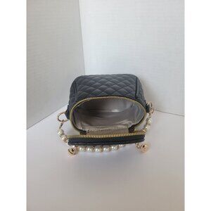 Small Mini Quilted Black Vanity Case Faux Pearl HandlePurse Bag Chain Zippers