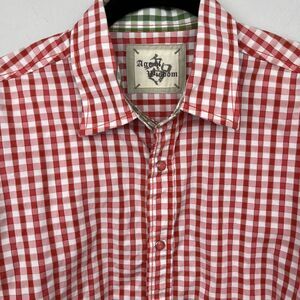 Age Of Wisdom Med. Men's Gingham Check LS Button Down Shirt Flip Cuff Pearl Snap