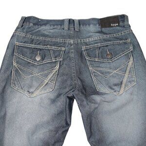 Hype Mens Sz 32 X 32 Medium Wash Denim Blue Jeans Straight Leg Decorated Pockets