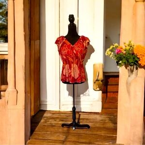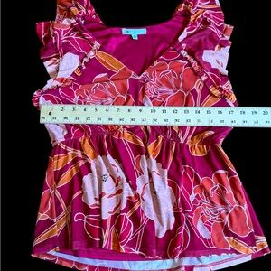 Fuchsia and orange floral, flutter sleeves, li Ed