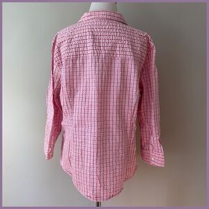 Size XL / O pink and white gingham 3/4 sleeve button up from L.L. Bean with one small tag gun hole as shown in photos. The material is textured / crinkly and can be best seen in the last photo with the tags. •I’m open to fair offers and negotiations on all items!•