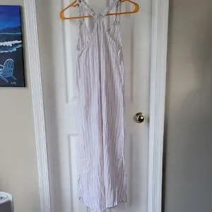 Chic Rachel Ashwell maxi dress with subtle white and cream stripes with gold accent. Ideal for any occasion. worn once, excellent condition, sz small