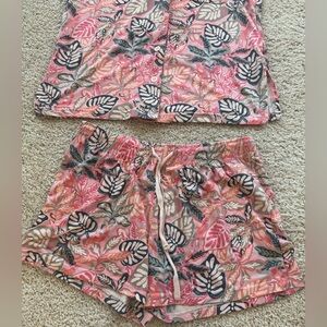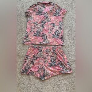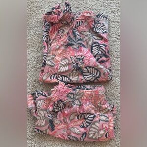 Relax in style with this floral pink pajama set. Perfect for a cozy night's sleep.