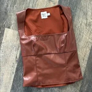 Princess Polly Faux Leather Brown Top