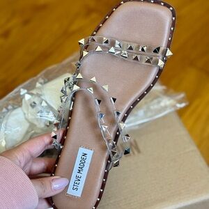 New with box, clear studded Steve Madden Sandals. Never worn.