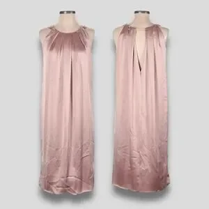 This Vera Wang satin designer dress is the ultimate choice for weddings, cocktail parties, holiday celebrations, or any formal event where you want to look effortlessly chic. Made from 100% satin, this dress exudes elegance with its sleek, sleeveless design and timeless appeal. The midi-length (39" from shoulder to hem) offers a flattering silhouette perfect for a wide variety of occasions, from black-tie galas to date nights. Its refined design and luxurious fabric make it the perfect addition to your special occasion wardrobe.