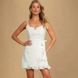 NWT Lulus White Ruffled Faux-Wrap Mini Dress