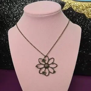 This elegant Bronze flower pendant necklace adds a touch of sophistication to any outfit. Perfect for any occasion.