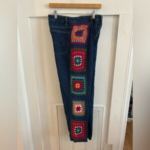 Farm rio Crochet Squares Denim Pants jeans Medium