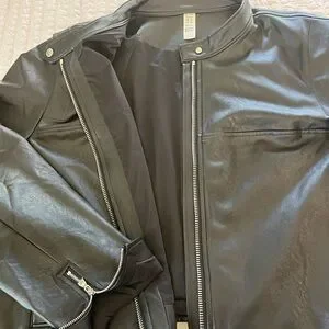 SPANX Black Leather Motorcycle Jacket with Zipper Closure- 2X