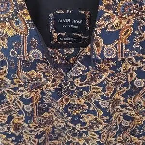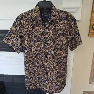 great used condition. Medium. Silver Stone Collection. 65% Cotton. 35% Polyester. Elevate your style with the Men's Navy Floral Shirt. Featuring a striking navy color with intricate floral patterns, this shirt is perfect for any occasion. Experience comfort and elegance with. chest 20.5 inches. length 29 inches. Soft and comfortable everyday fun design shirt. B 8