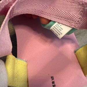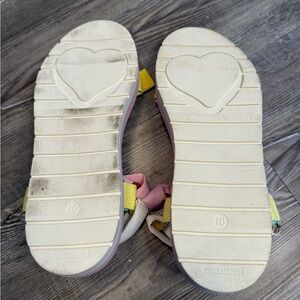 The cutest pair of sandals for this summer! These sandals are from the exclusive SCL X Target collaboration! Hard to find and sold out in stores!! Never worn - but tried one on and must’ve walked outside - can’t tell once shoes are on!! The cutest heart details and the most vibrant spring/summer colors!! The heart detail on the bottom is so cute too. These are a MUST for your closet!