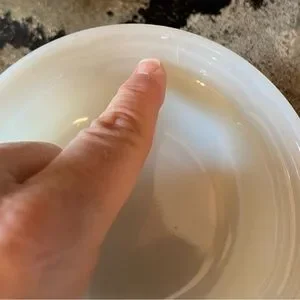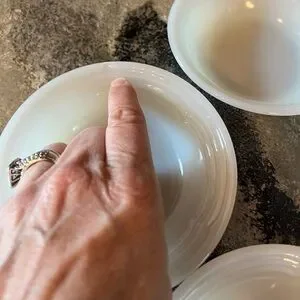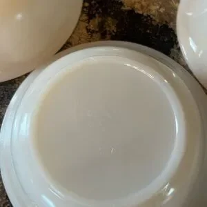 One of them has a chip in it and the other 3 are just marks inside the Fire King from the Production of it..