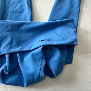 Comfortable, blue Lululemon Wunder Train leggings for women. Perfect for working out or everyday wear.