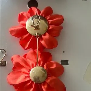 Bold Fabric Coral (orange) floral pierce earrings from Zara. Perfect for adding a pop of color. 4 inches long. Gold color hardware.