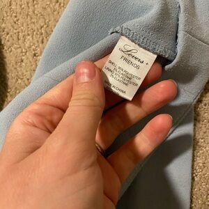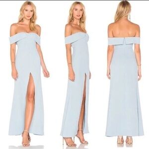 Lovers and Friends Danica maxi off shoulder gown in silver blue with front slit. Very good used condition! Has stretch for a fitted look.