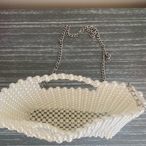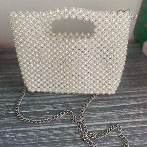This elegant cream handbag features a stunning pearl beaded design, perfect for adding a touch of sophistication to any outfit. In perfect condition. Comes with removable silver shoulder strap. I wish I had another event to wear this to!!