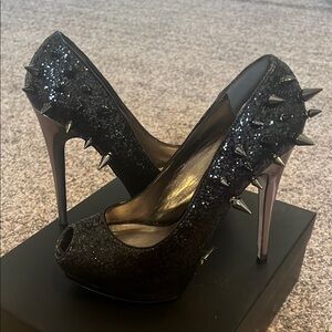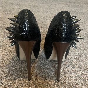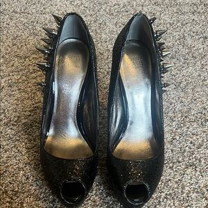 Black Spiked Peep-Toe Heels