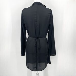 Naked Wardrobe Women's Dress Size Small Black The Plunge Faux Wrap Long Sleeve Satin Mini