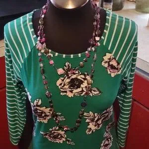 Spring/Summer Eye Candy Essentials Floral Green Women's Top with Necklace