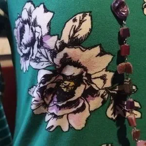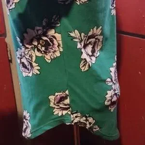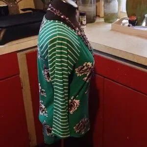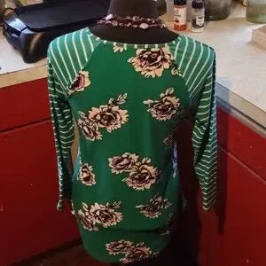 Stylish green top with floral design, perfect for any occasion. Comfortable and chic.Gently used top with only mild pilling on left shoulder and sleeve (see photos) and a few loose threads.