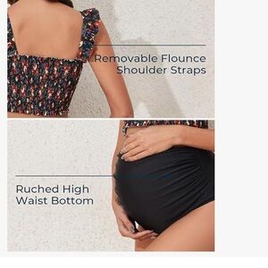 Summer Mae MATERNITY L NWOT black red highwaist smocked top 2-piece Bikini
