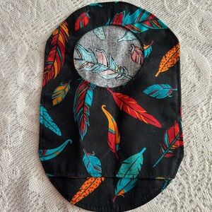 Set of four colorful ostomy covers. Includes vibrant patterns and designs.