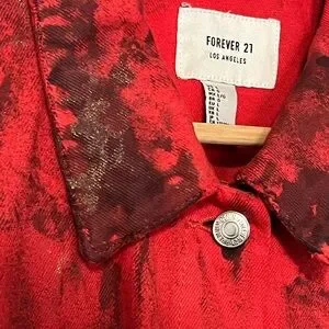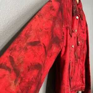 Elevate your style with this vibrant red denim jacket. Perfect for any casual outing.