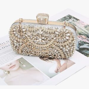 LUXURIOUS FLOWER CLUTCH BAG Sparkly Rhinestone Crystal Glitter Sequin Glam Purse
