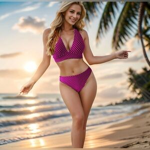Stylish polka dot bikini set perfect for beach days. Features a vibrant pink color for a standout look.
