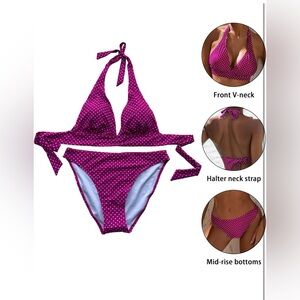 🚨SOLD!!🚨Mid Rise Bikini Halter Neck V Tie Push Up Front Classic Polka Dot Size L