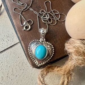 Elegant sterling silver Brighton heart-shaped pendant necklace featuring a vibrant turquoise stone. Perfect for adding a pop of color to any outfit. Like new.