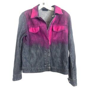 Fendi Womens Ombre Denim Jacket Pink & Black Gradient snaps size 8 medium M Med